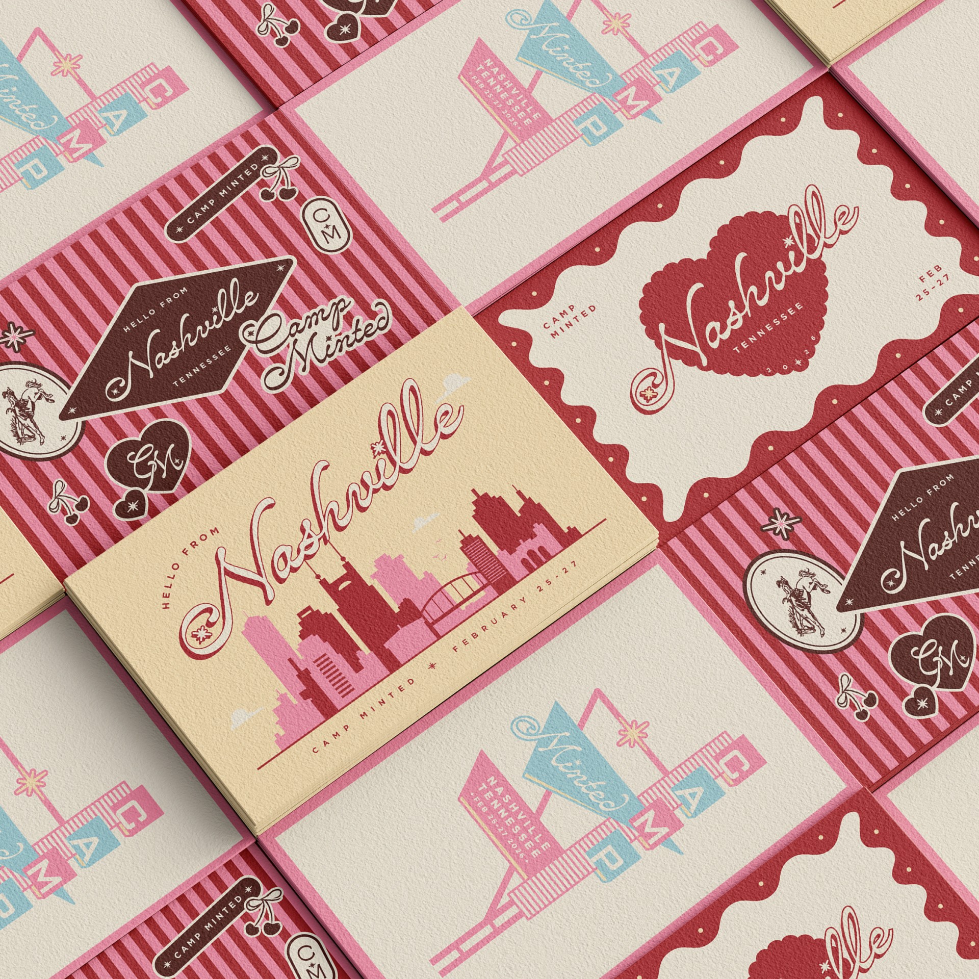 This year’s event takes place at the Graduate Hotel in Nashville, TN—a quirky, Dolly Parton–themed hotel. Drawing inspiration from the hotel’s decor and Tennessee’s rich musical history, we embraced a retro ’50s theme, weaving in deep reds and bright pinks alongside nostalgic details from diners, roller rinks, and music halls.